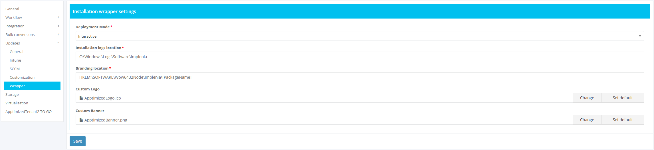 This option indicates which packaging platform should be implemented by Apptimized specialists. The following packaging platforms available: