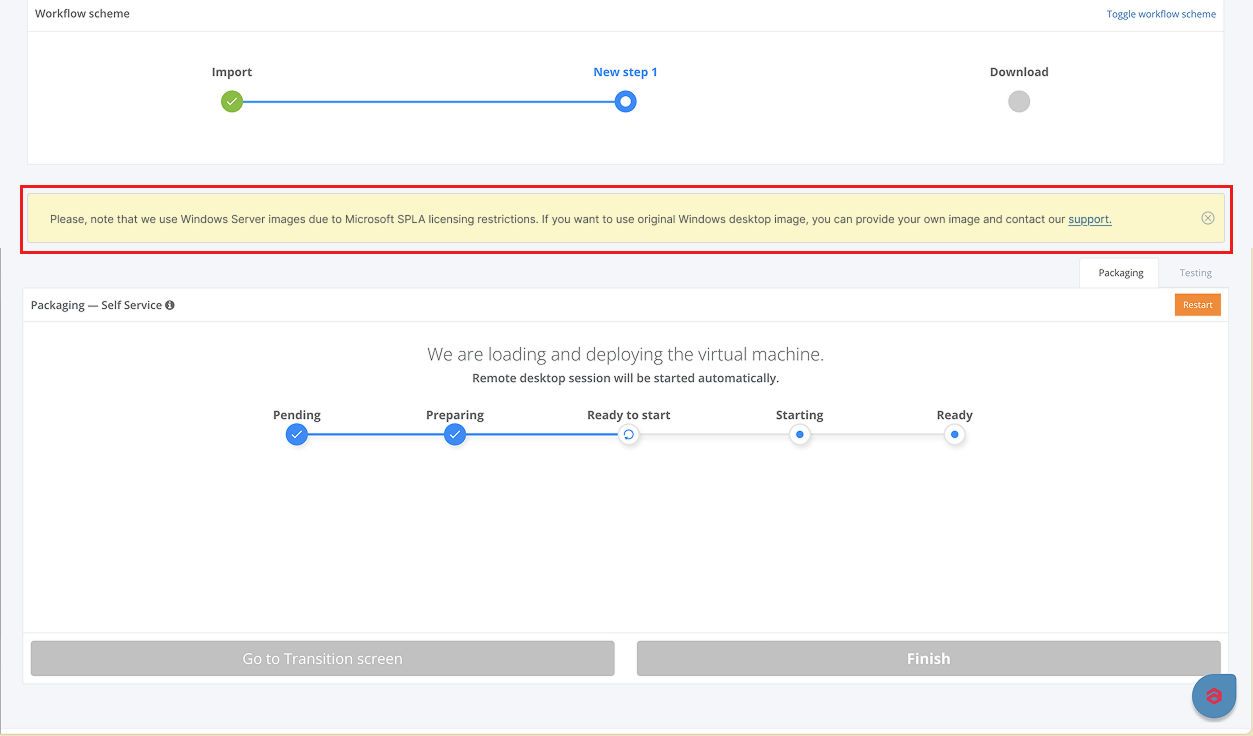 With the Apptimized Workspace Launcher, the cloud environment is prepared according to a user’s preferences so that any additional activities to start packaging are not needed.