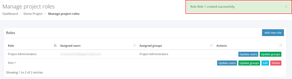| Roles | This attribute provides access to perform role management activities for the project. |