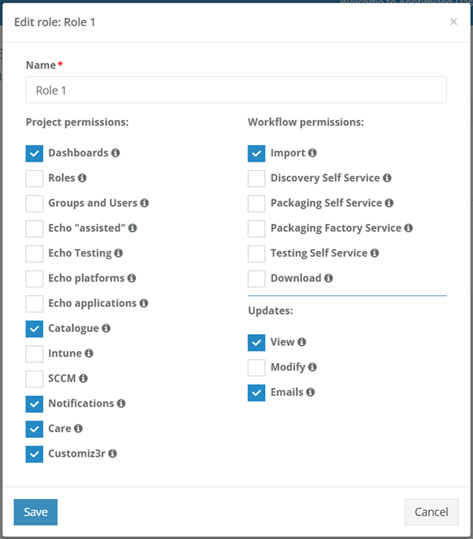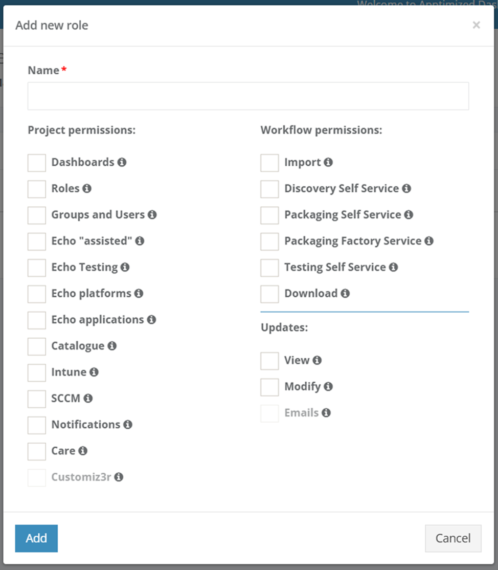 | View | This attribute provides view access to the Updates feature of Apptimized. |